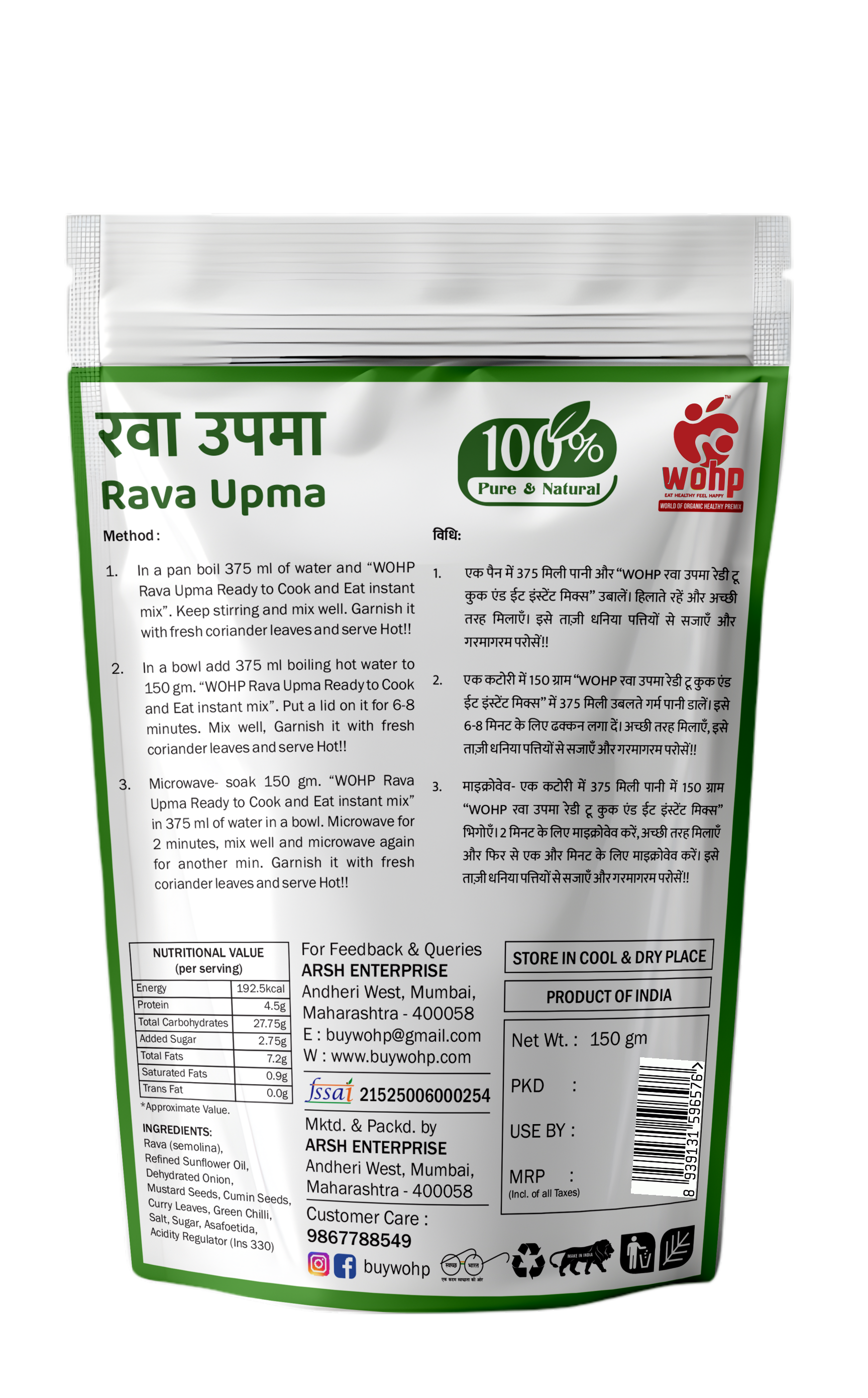Get ready to enjoy a wholesome and tasty South Indian classic — made with the perfect blend of suji (semolina) and flavourful seasoning. This delicious and healthy traditional breakfast is now ready in an instant. Just add boiling water, and it's good to go!